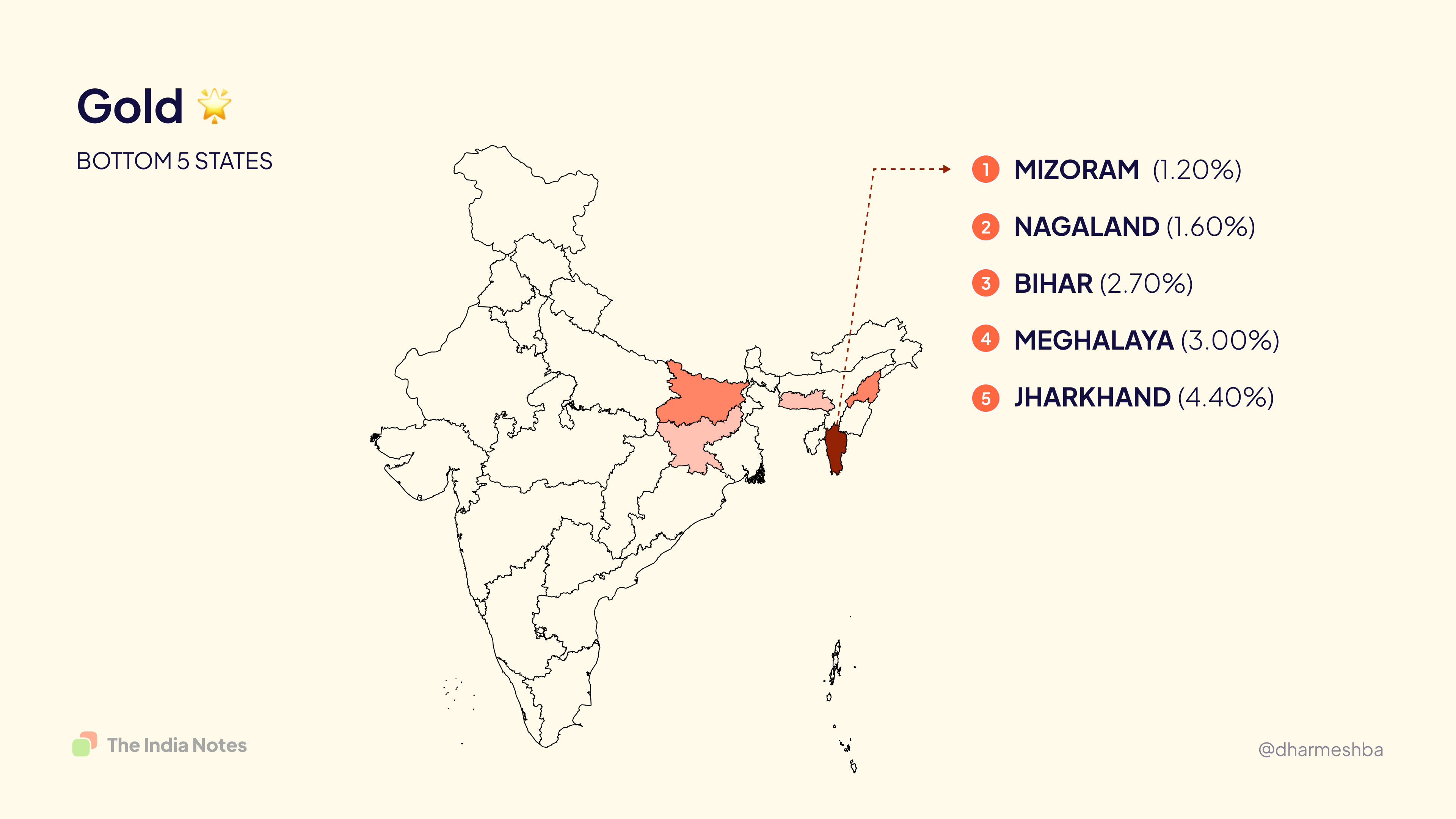 Bihar tops the chart. On average, the state population holds 90.5% of their money as real estate assets, including lands, residential and commercial properties. The Northern part of the country seems to prefer real estate to others.